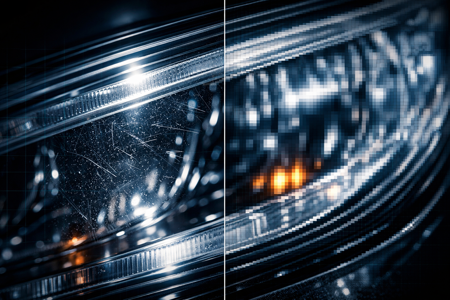 Sollen auf dem Frontscheinwerfer eines Autos kleine Kratzer erkannt werden, die eine minimale Breite von etwa 10 µm haben, wird man den gesamten Scheinwerfer nicht mit einer einzelnen 5-Megapixel-Aufnahme prozesssicher inspizieren können.