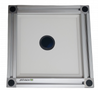 Die Leuchtfelder sind wahlweise auch mit integriertem Kamerafenster erhältlich, wichtig für Anwendungen bei denen der Strahlengang der Lichtquelle auf der gleichen optischen Achse wie der Strahlengang der Kamera liegen muss.Die Kameraöffnung hat standardmäßig einen Innendurchmesser von 36 oder 56 mm (andere Größen auf Anfrage).