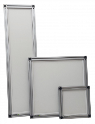 Die Panelbeleuchtungen sind in verschiedenen Standardgrößen erhältlich. Das T-Nut Profil erleichtert die Montage, ein 4-poliger M12-Stecker ermöglicht eine einfache Verkabelung.