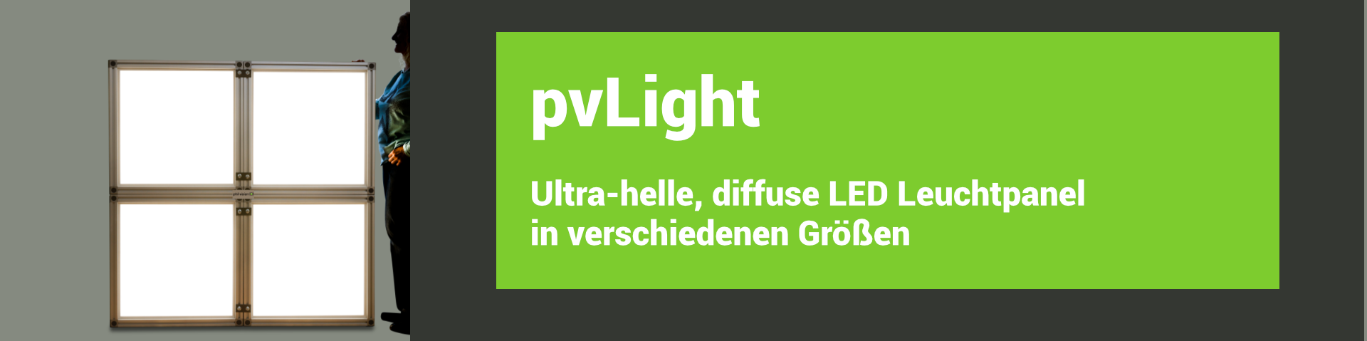 Die robusten LED-Panel der pvLight-Serie bestechen durch eine extrem homogene Lichtverteilung, eine lange Lebensdauer, sowie durch ihr hervorragendes Preis-/Leistungsverhältnis. Die große Abstrahlfläche erzeugt ein sehr homogenes, diffuses Licht von hoher Intensität.